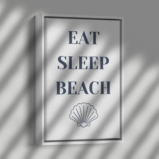Eat Sleep Beach :: Coastal Decor, Beach House Wall Art (Framed Canvas)